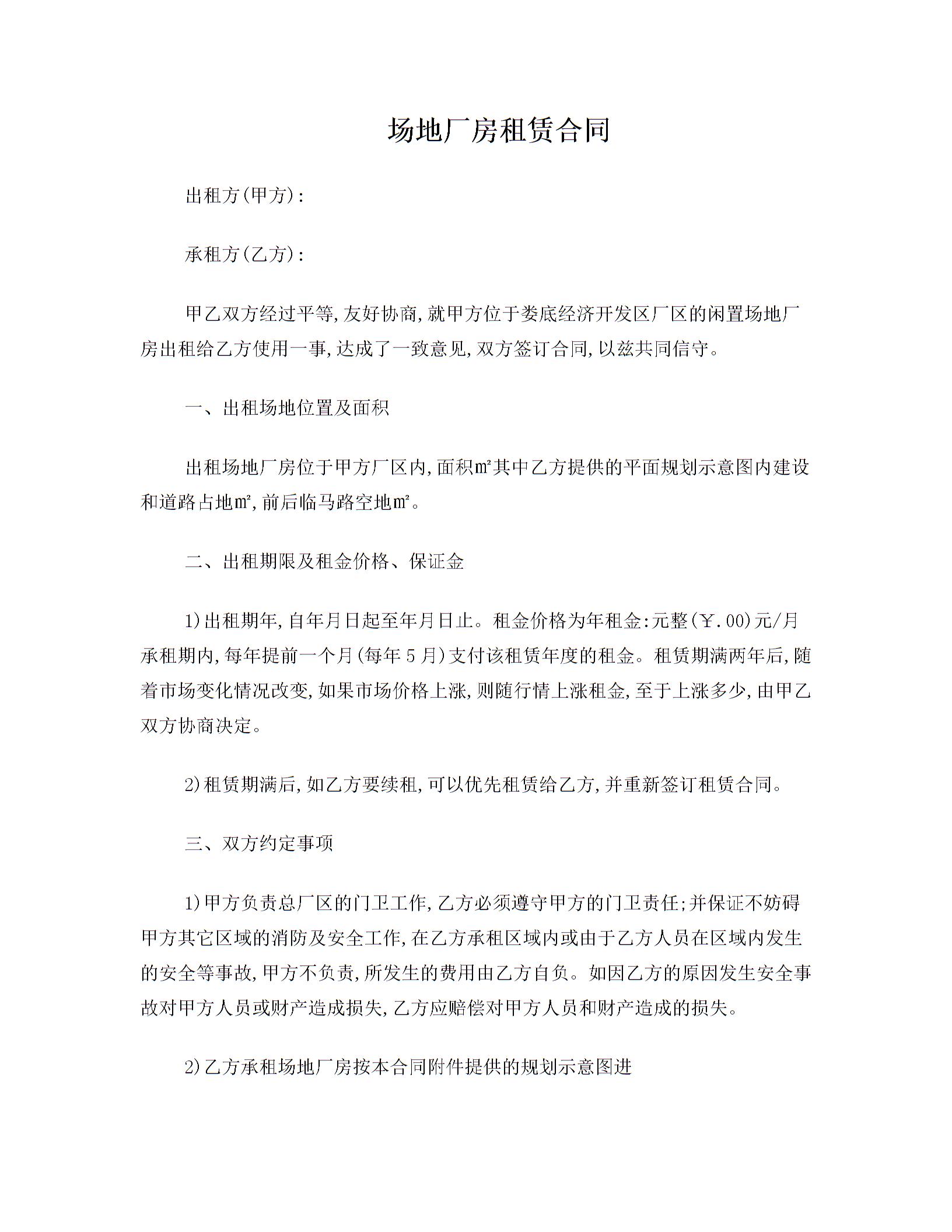 场地厂房租赁合同