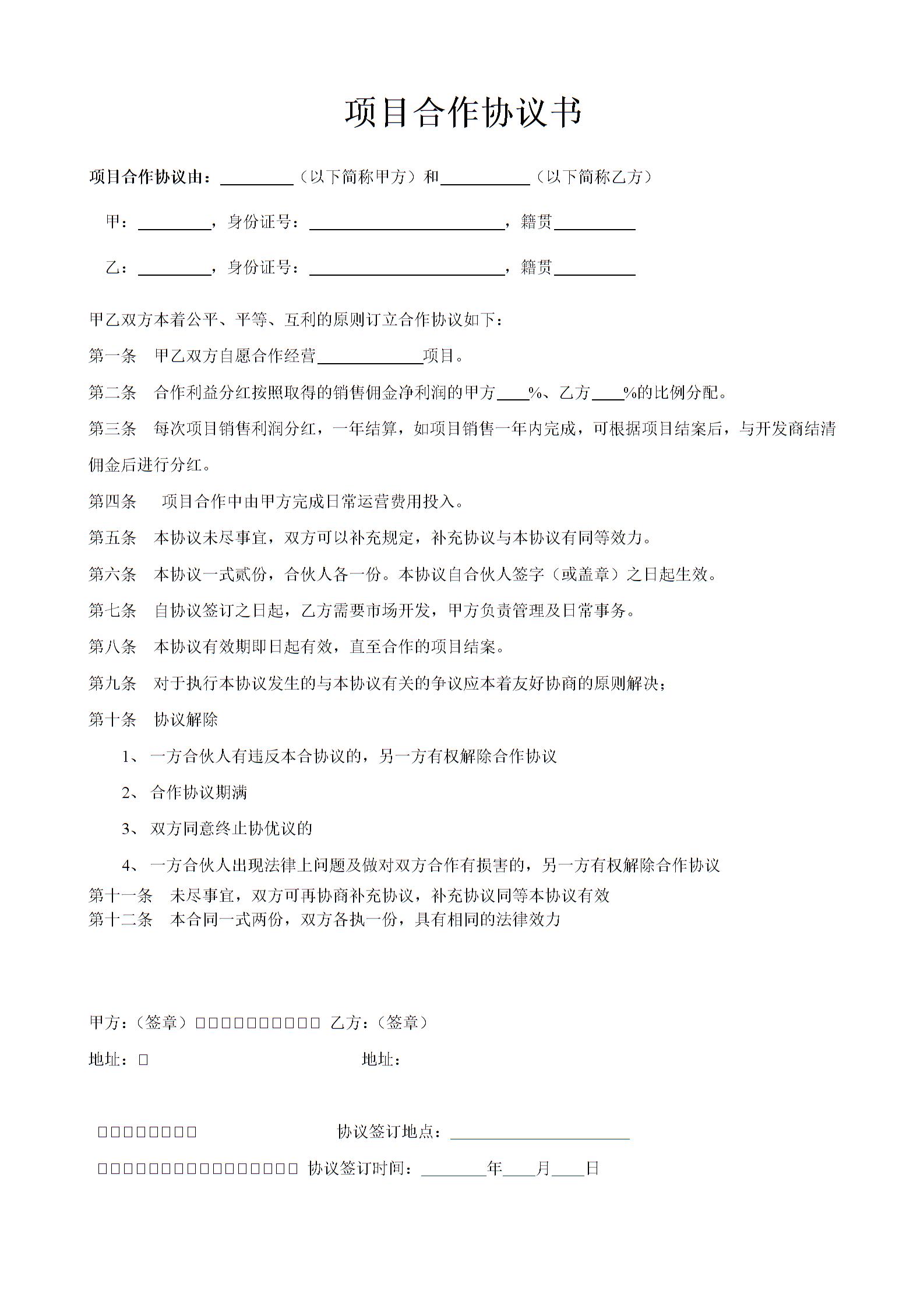 项目合作协议书范本(1)