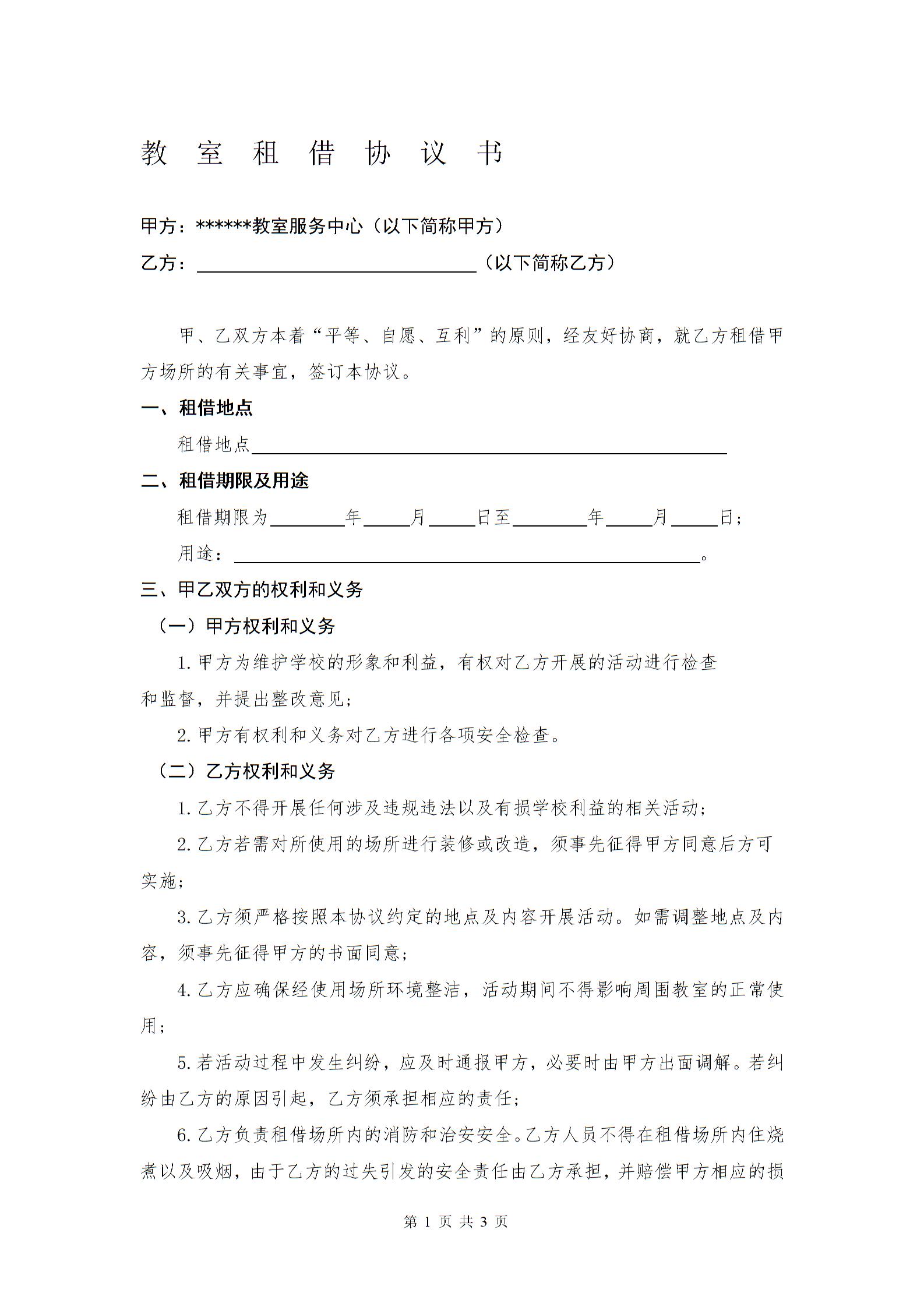 教室租借协议书