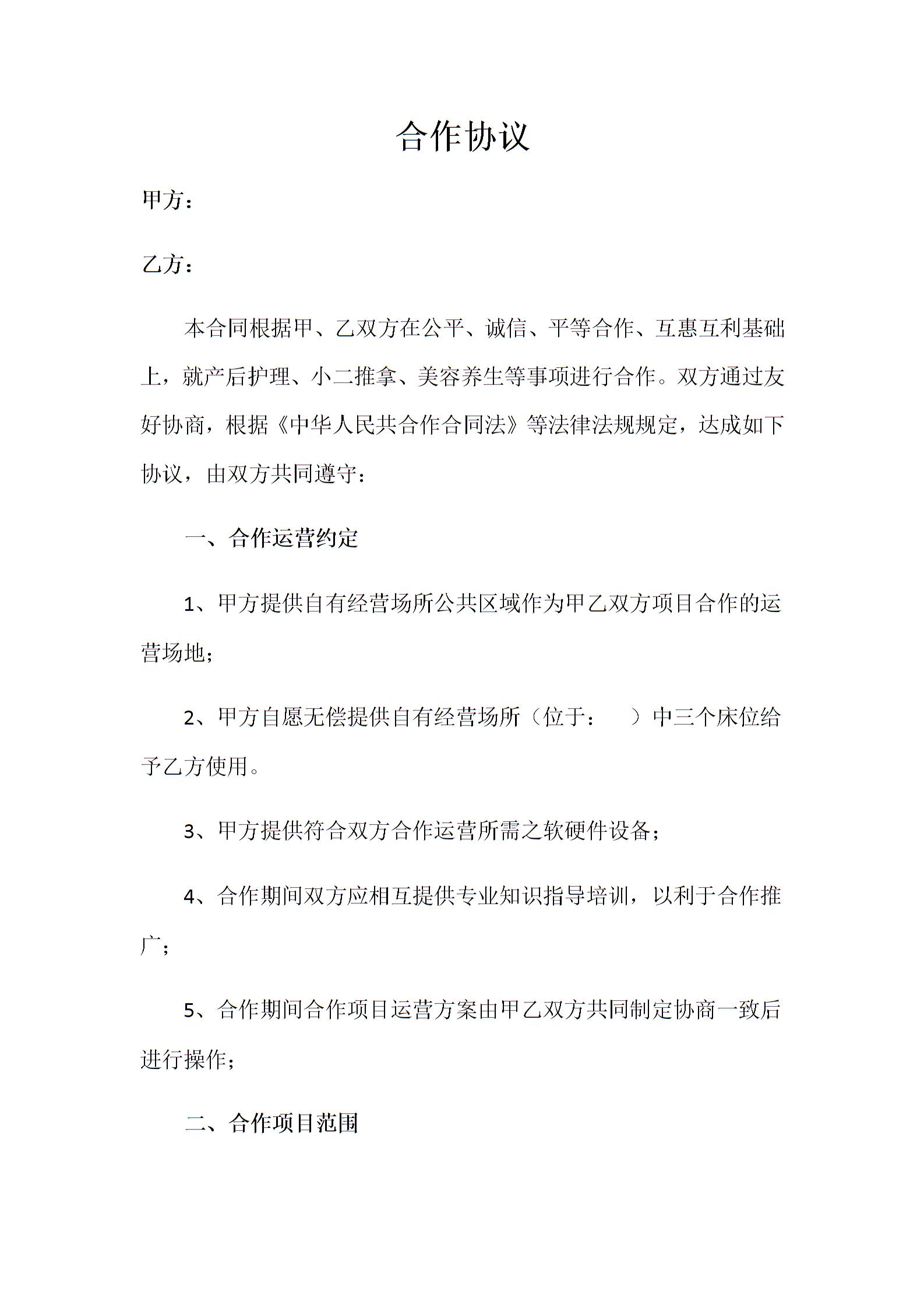 更多合作协议下载