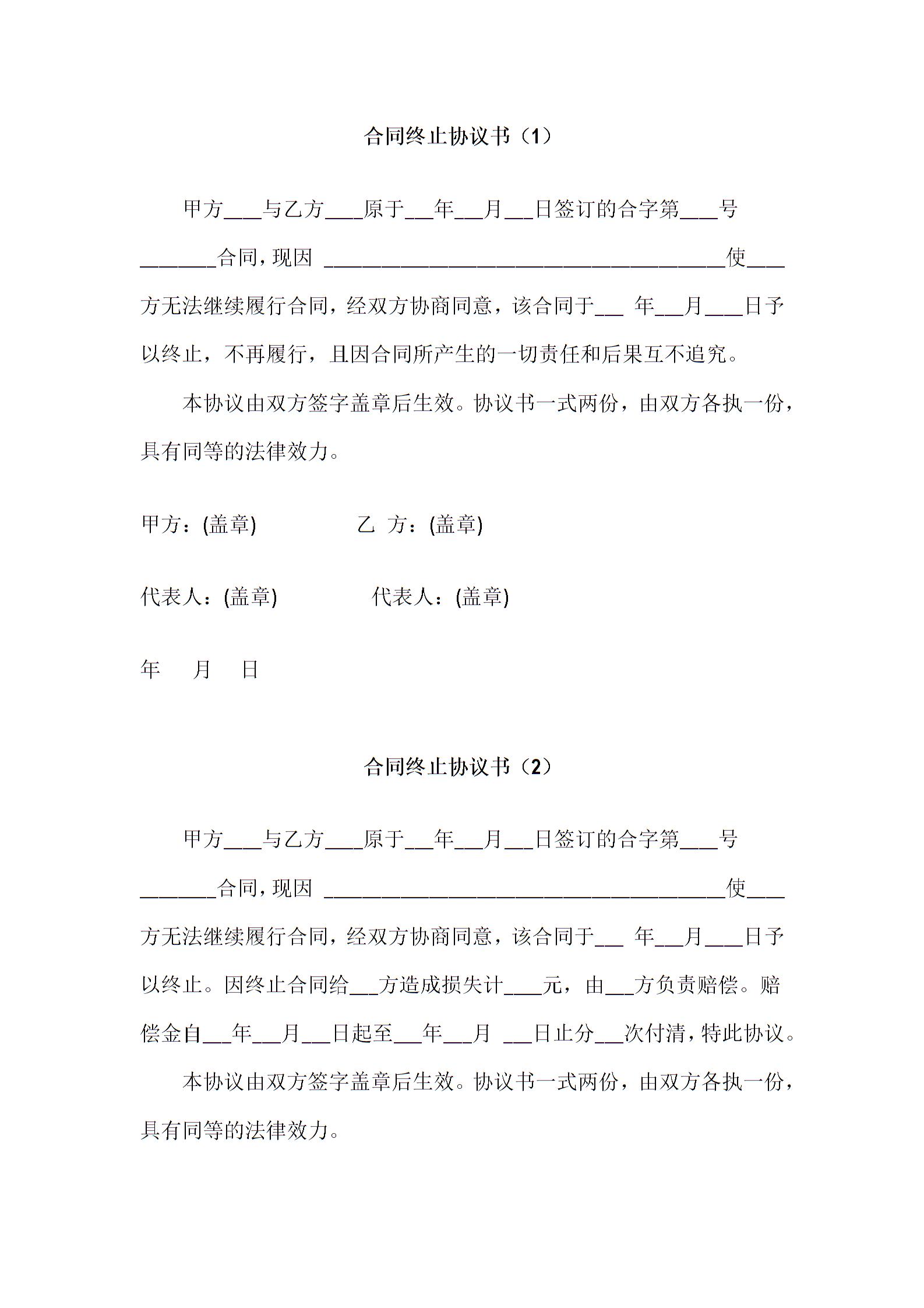 合同终止协议书