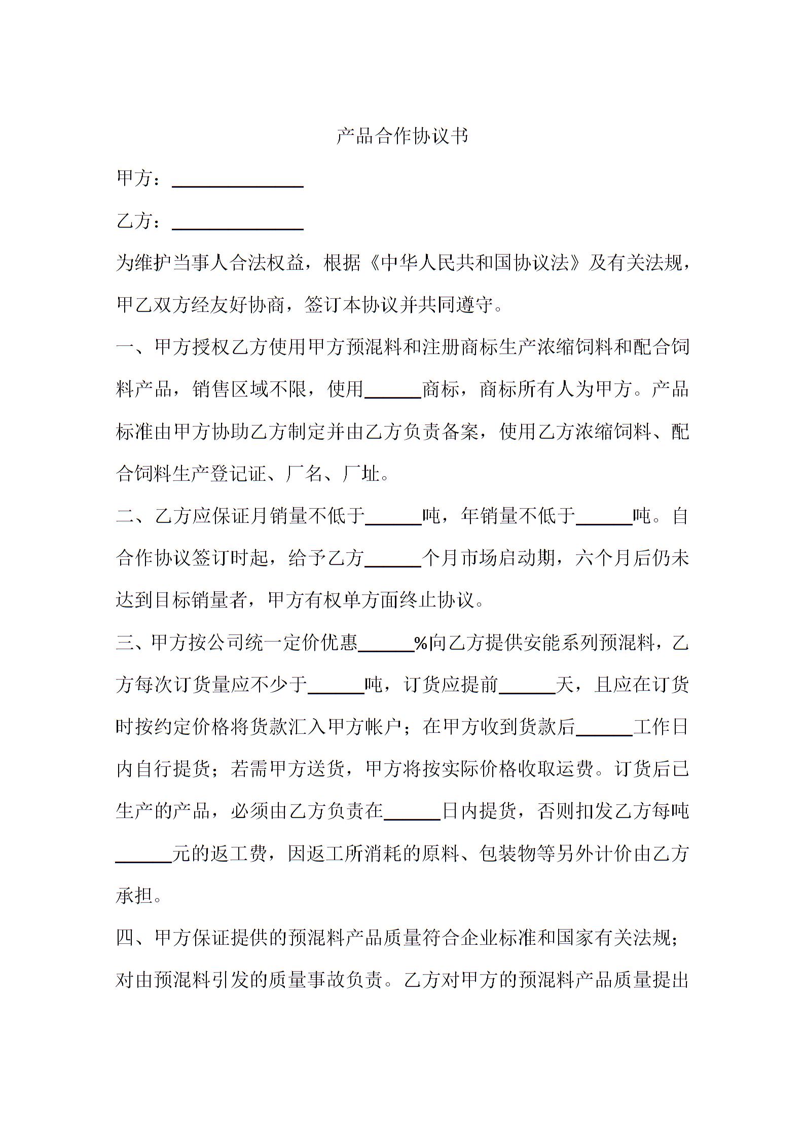 产品合作协议书