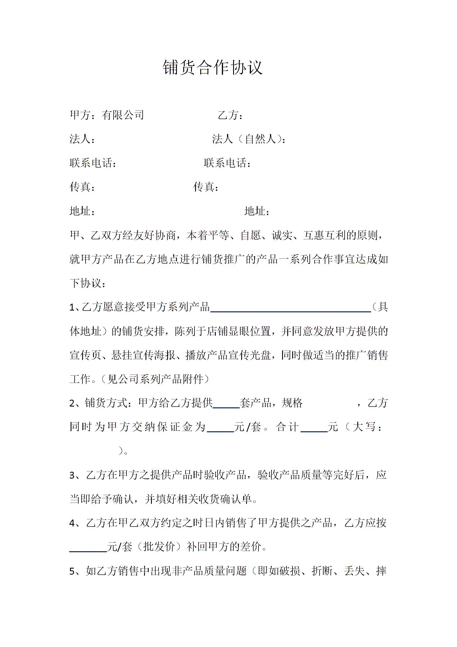 铺货合作协议