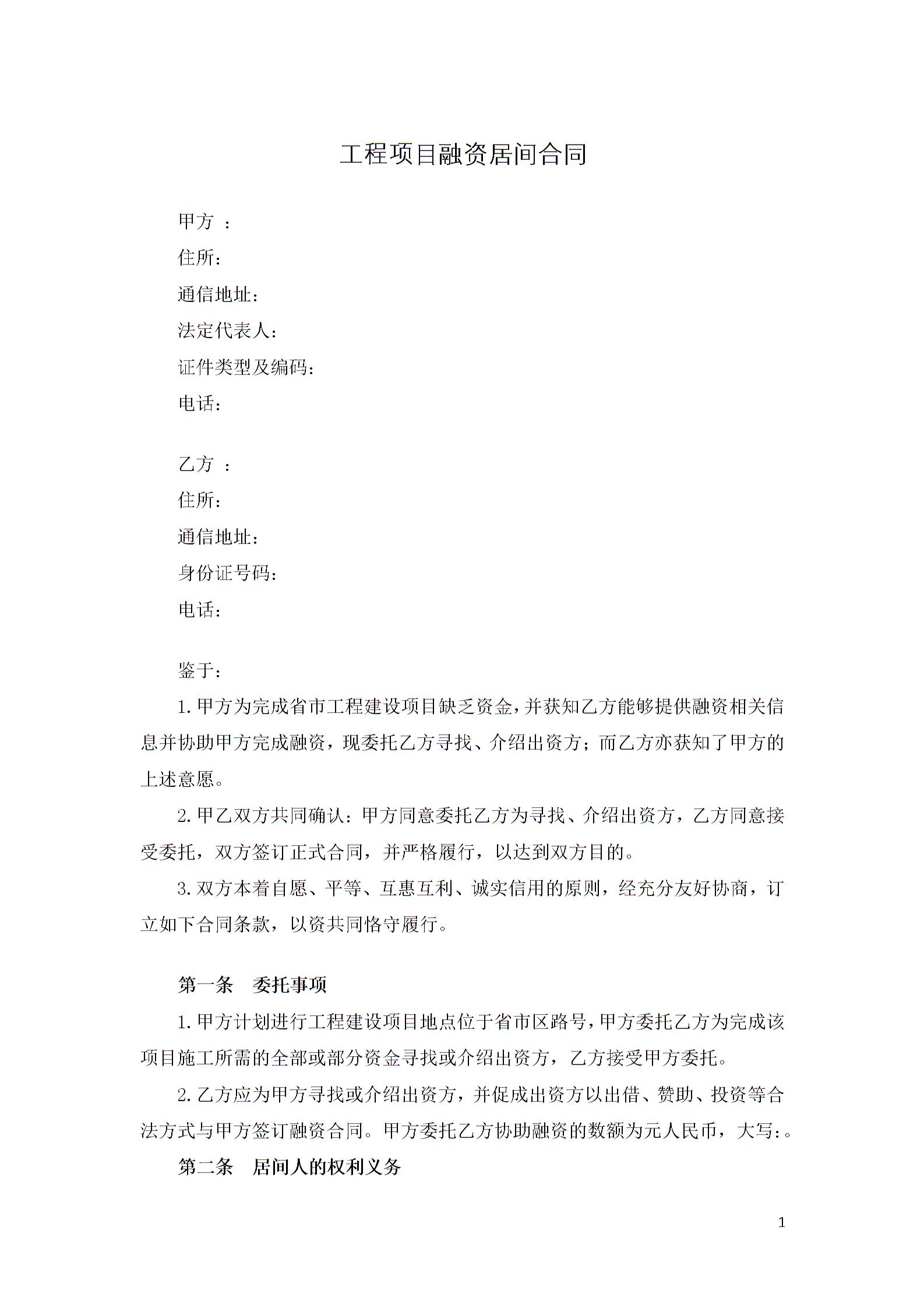 工程项目融资居间合同
