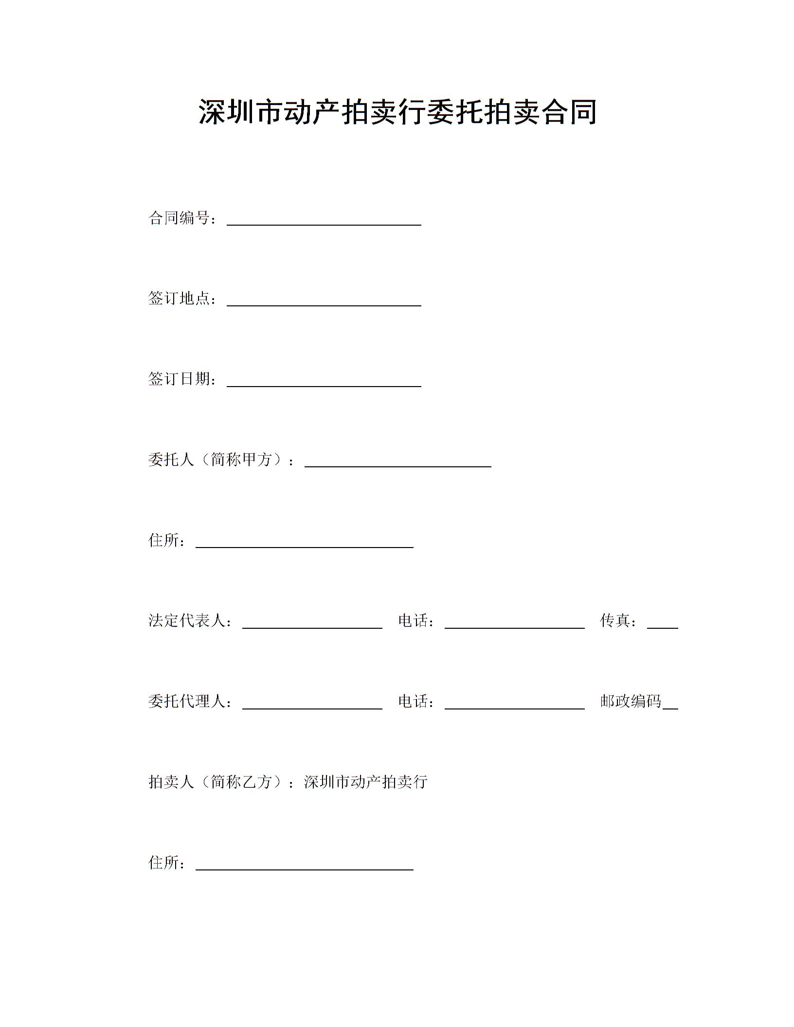 深圳市动产拍卖行委托拍卖合同