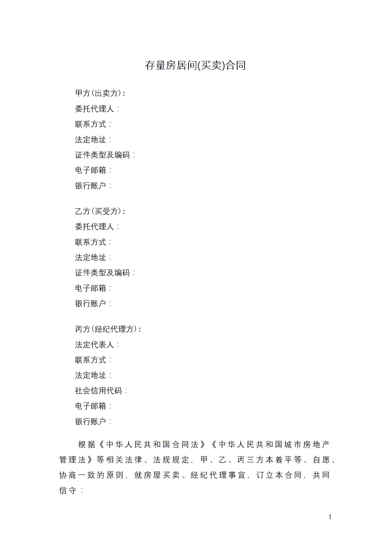 存量房居间(买卖)合同