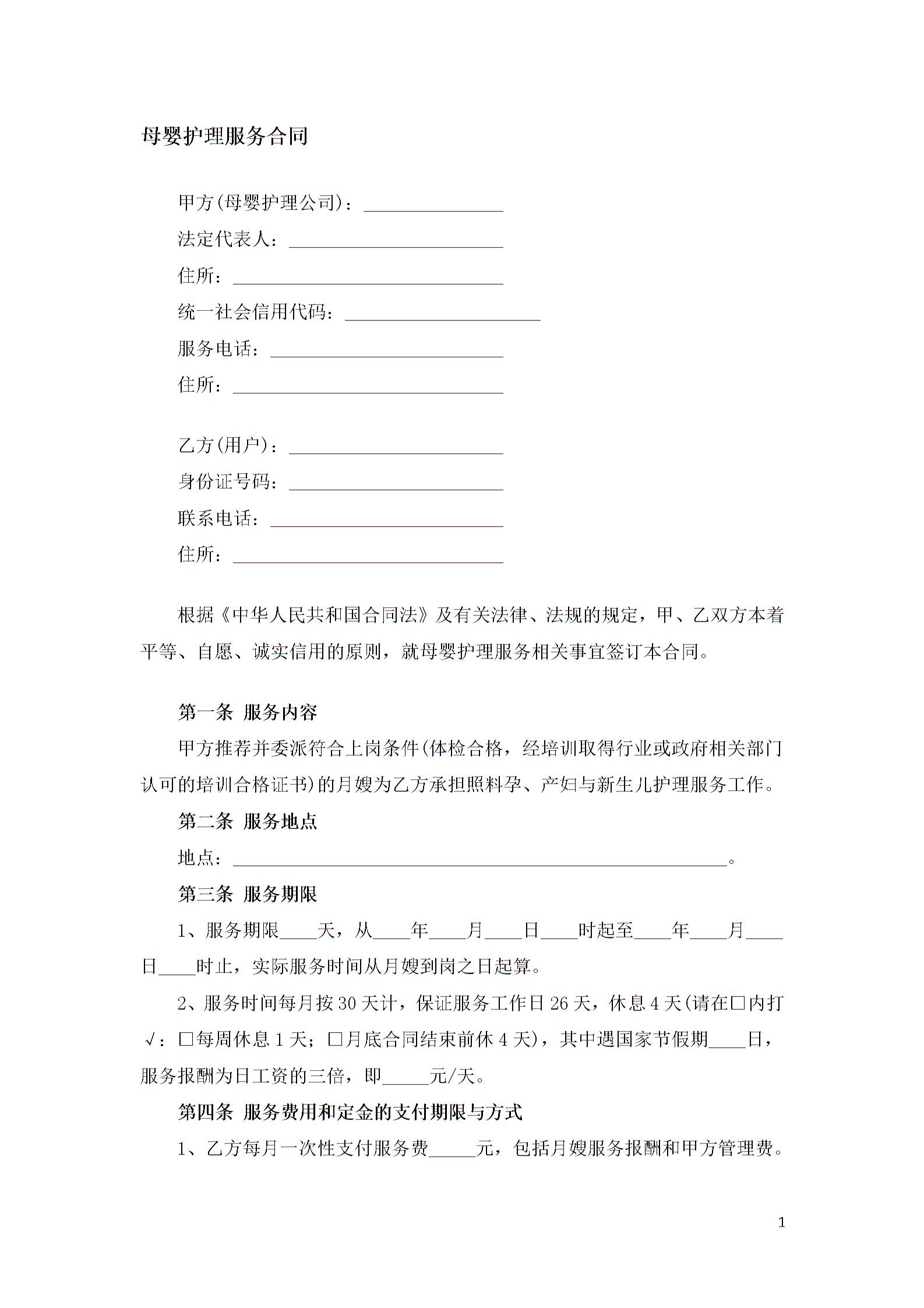 母婴护理服务合同