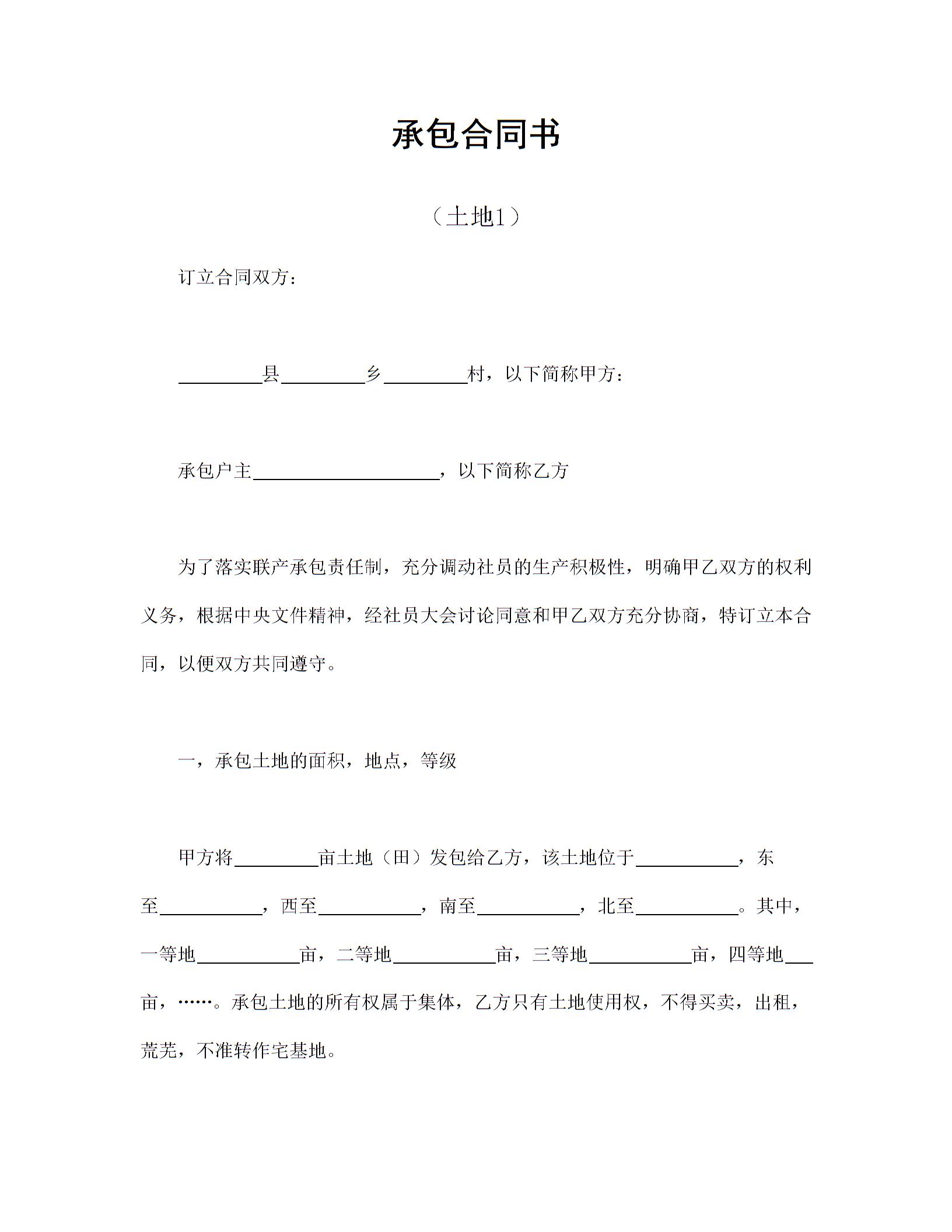 承包合同书(土地1)