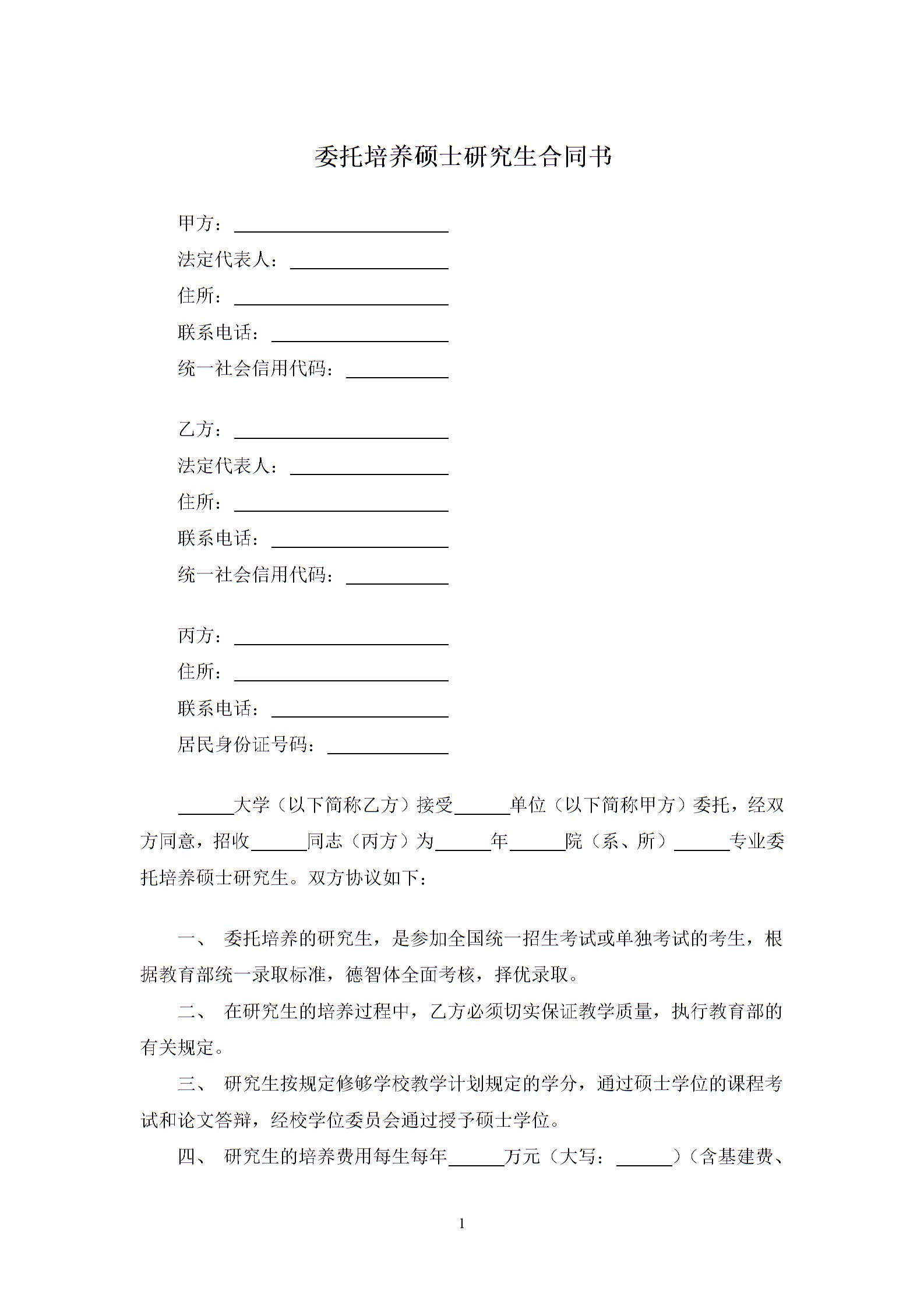 委托培养硕士研究生合同书