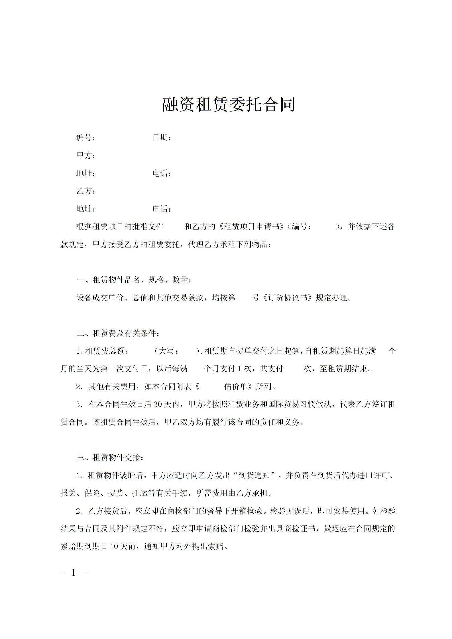 融资租赁委托合同