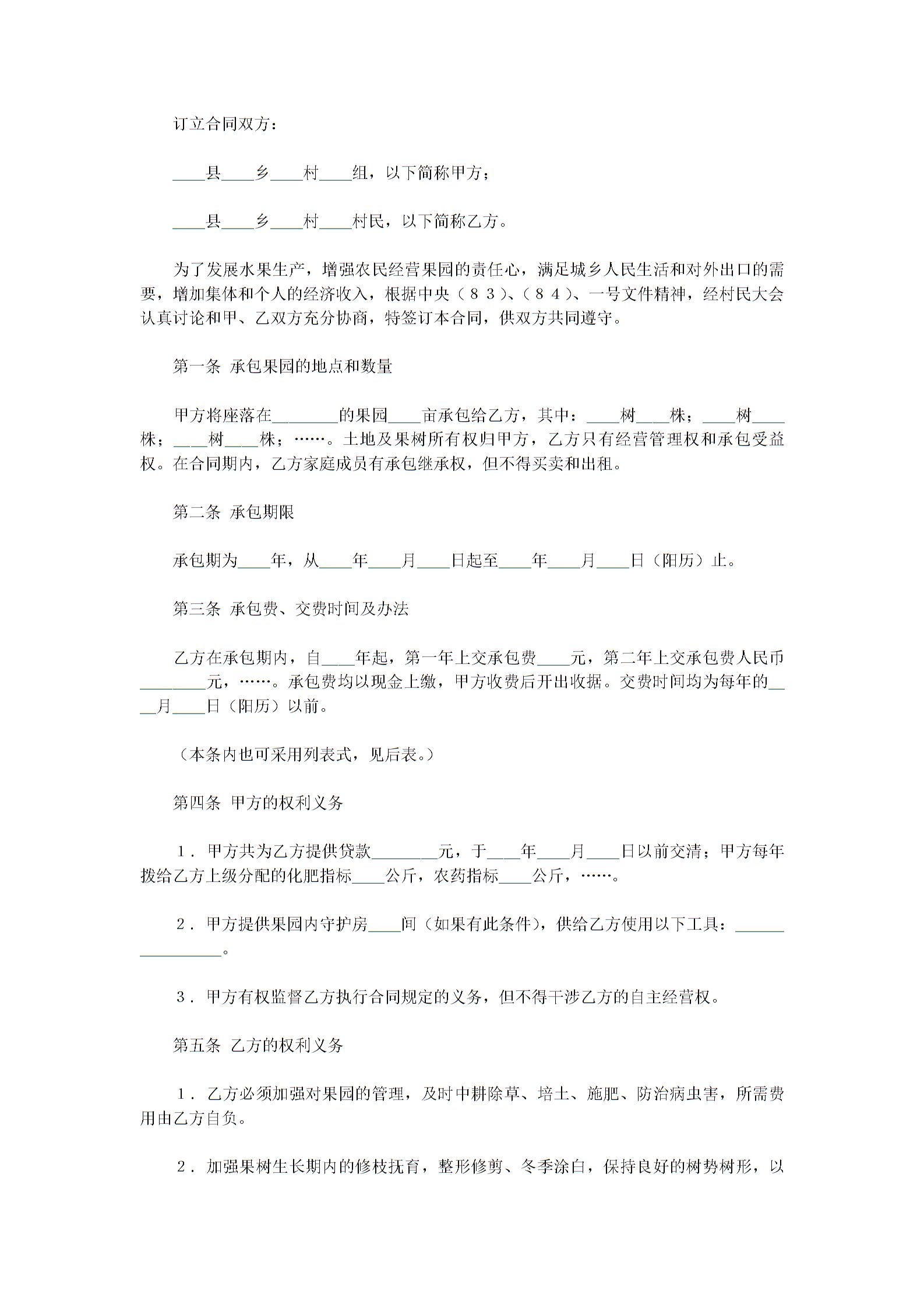 果园承包合同范文